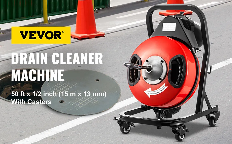 VEVOR Sewer Machine Drain Cleaner 15m x 13mm 370W Sewer Cleaning Clog w/Cutters VEVOR Sewer Machine Drain Cleaner 15m x 13mm 370W Sewer Cleaning Clog w/Cutters