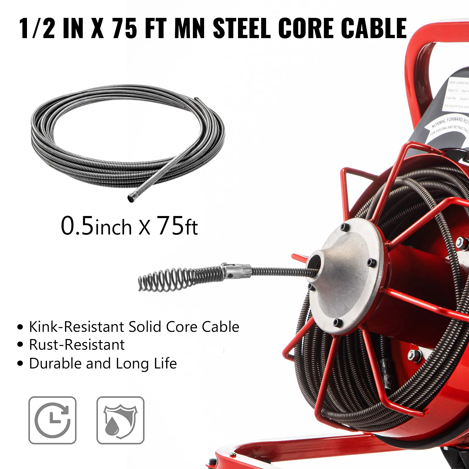 This 75 ft x 1/2 in. Mn-steel cable would effectively resist breakage, tangling, kinking, and corrosion while maintaining its rigidness. It can easily realize multiple 90-degree bends by its high hardness and toughness.
