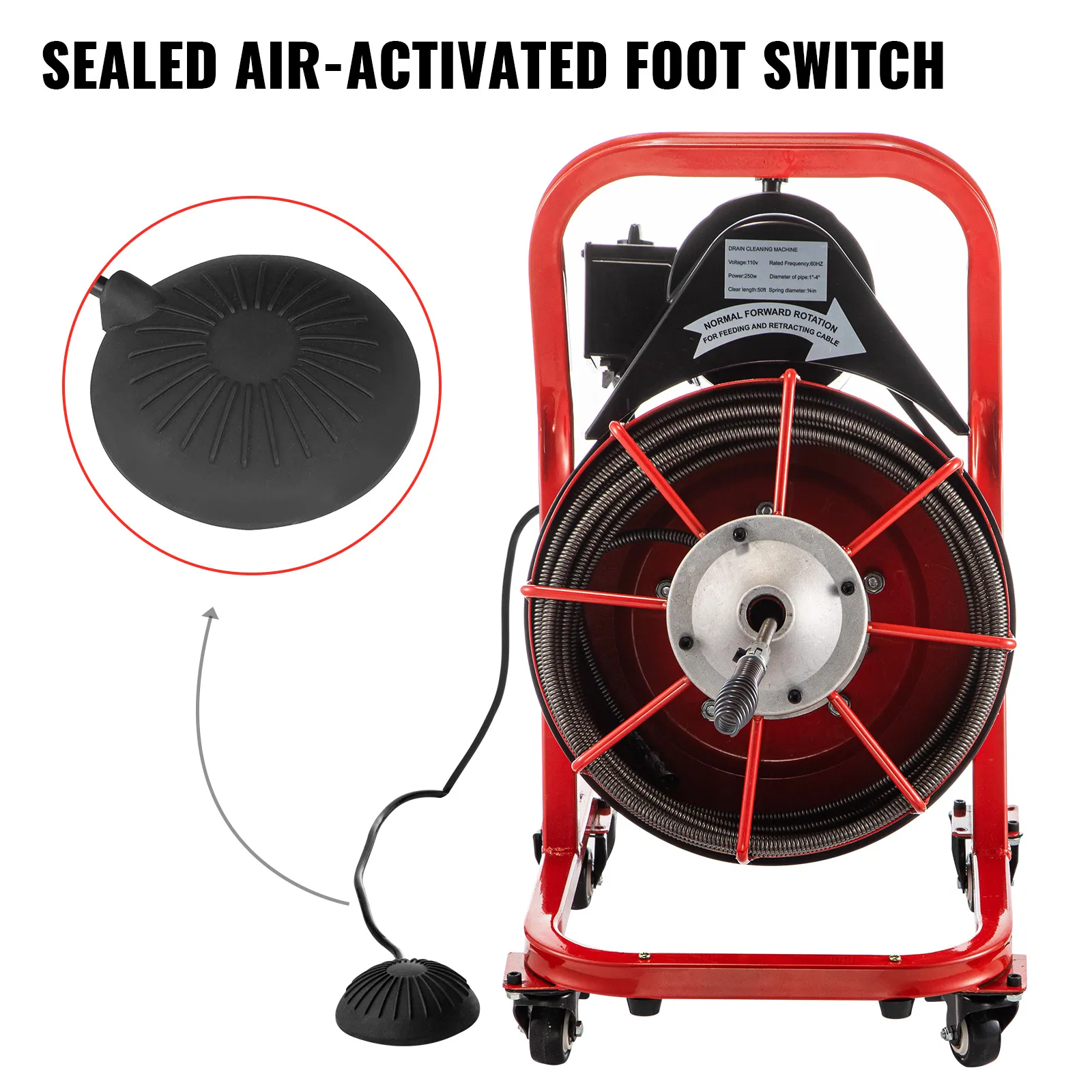 The air-activated pedal switch is designed to be operated alone. It provides quick and easy on/off control of the motor so that you can control the cable's movement with less effort.