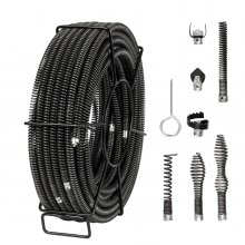 VEVOR Drain Cleaning Cable 45 FT x 7/8 Inch, Professional Sectional Drain Cleaner Cable with 6 Cutters for 0.8" to 5.9" Pipes, Hollow Core Sewer Drain Auger Cable for Sink, Floor Drain, Toilet
