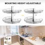 The kitchen corner shelf's mounting height is 22"-31"adjustable, easily mounts to the blind left or blind right cabinet, and the suitable cabinet size is 31 x 29 inches; the suitable opening size is 450 mm/17.7-inch.