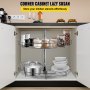 This kitchen corner cabinet organizer features two-layer storage baskets, with 24 inches / 61 cm in diameter, sturdy enough to hold objects up to 33 lbs / 15 kg, creating space for kitchen gadgets, bakeware, pans, and dry goods.