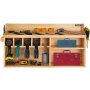 Our power tool organizer is crafted from high-quality pine. It features two paint coatings that ensure your shelf will be water-proof. 0.6 in/1.5 cm thickness ensures its durable for long-term use.