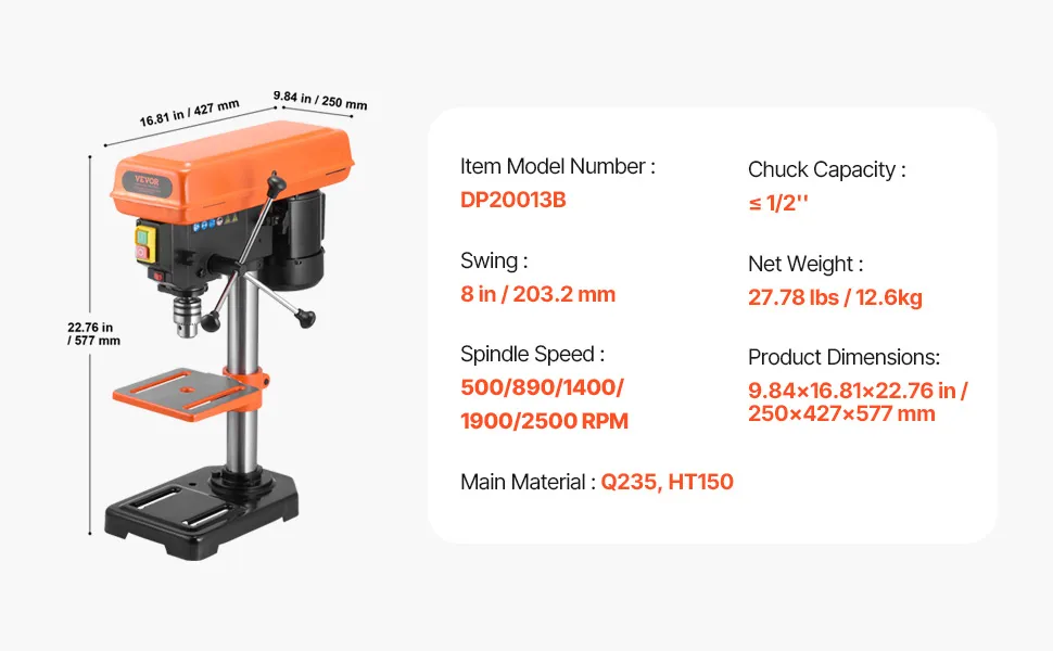 8-Inch Benchtop Drill Press, Elevate your DIY projects