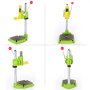 This heavy duty drill stand holder owns 60 mm (2.36") work travel. It is able to work as a drill press, tool holder and flex shaft holder. Ideal for crafts, hobbies, metal working and various around-the-house jobs, this benchtop work station can transform any rotary tool into a tabletop drill press.