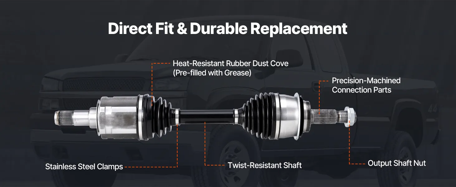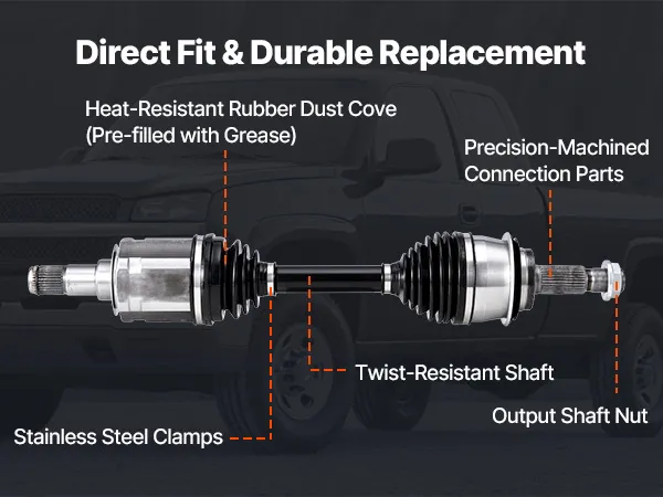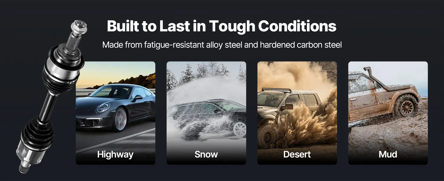 Built to Last: Our CV axle is made with alloy steel and carbon steel for strength you can count on. It handles commutes, long highway hauls, and a bit of light off-roading without flinching. No more worrying about early wear or annoying shakes
