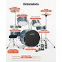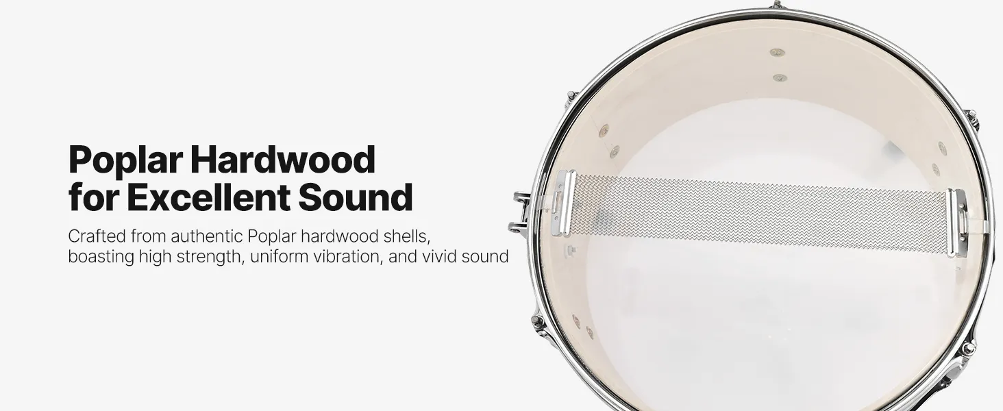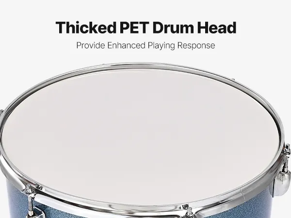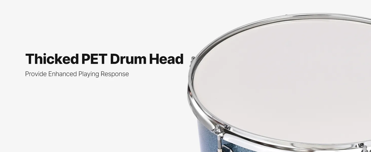 Pro-Level Sound for Beginners: Elevate your drumming adventure! Our expertly designed drum set is crafted from premium poplar wood. The drum shells deliver warm, rich tones that ring clearly on every hit. Thickened PET drumheads are built to handle energetic play while producing crisp, dynamic sounds—ideal for beginners ready to make their mark