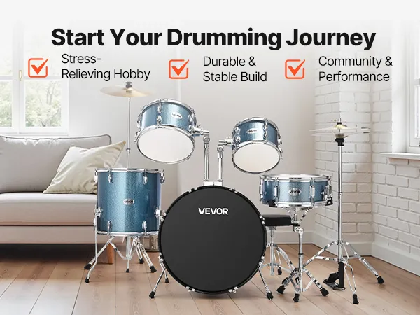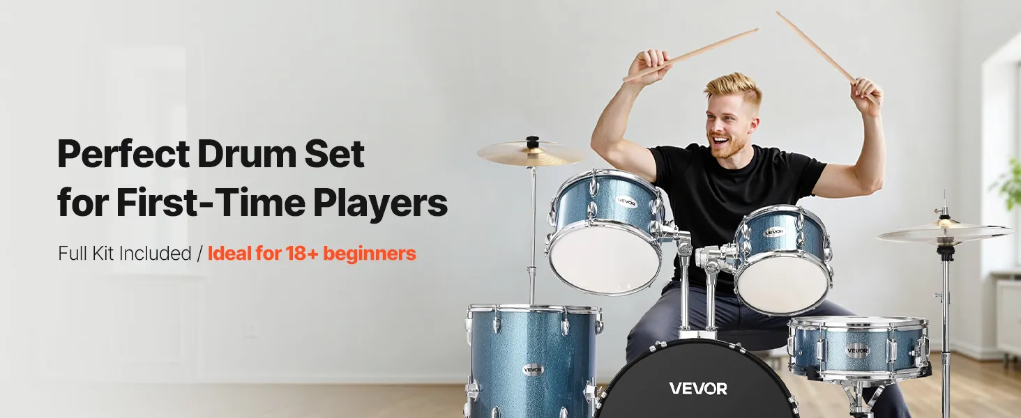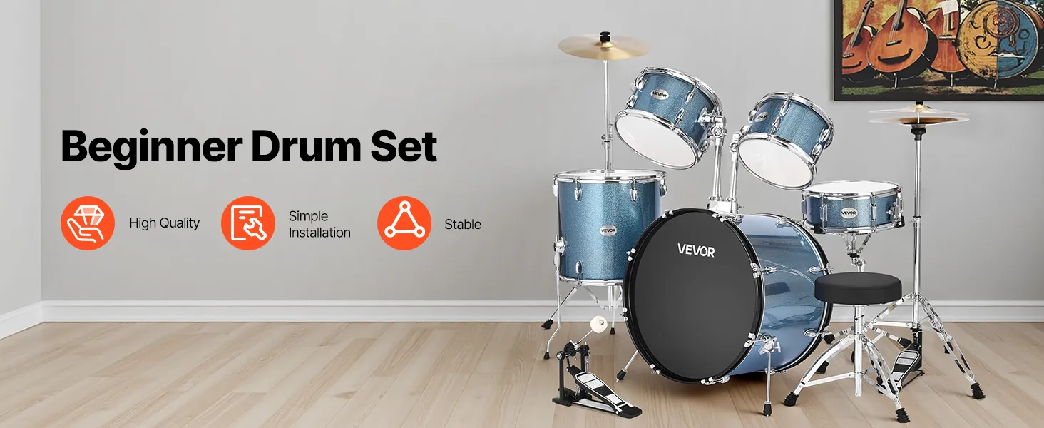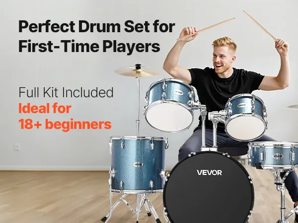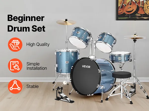 Q: Who is this drum set suitable for? A: This drum set is specifically designed for beginners, making it easy for them to start learning and enjoying drumming.