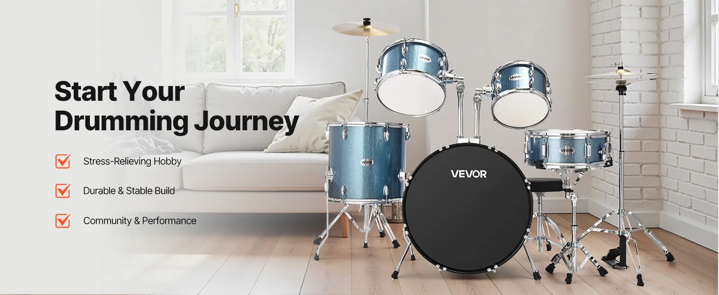 All-Inclusive Drum Kit: Our adult drum set has it all! Includes a pair of drumsticks for backup. Plus, easy-to-follow assembly instructions are included! The set ships unassembled for safe delivery, but setup is a breeze