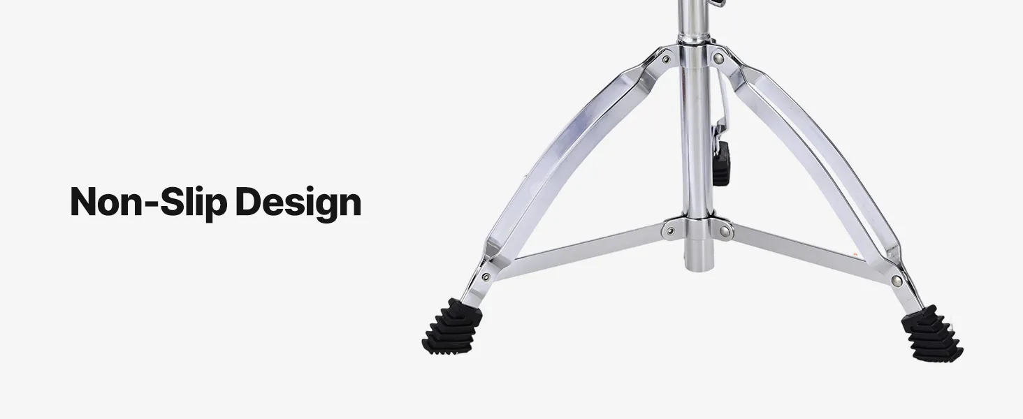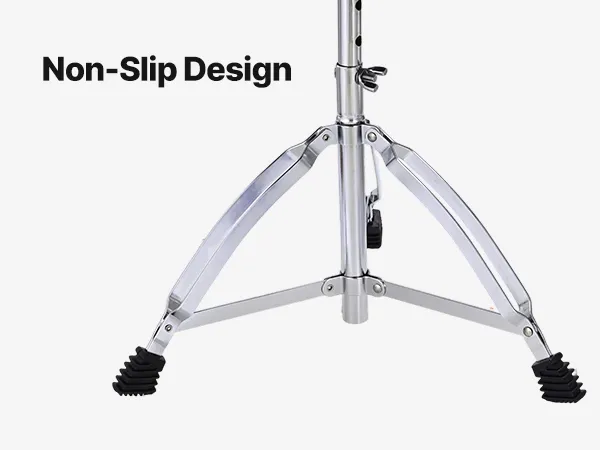Unshakable Drum Stand: Crafted from tough carbon steel, our stand offers rock-solid stability. It adjusts in height and angle, keeping your rhythm steady. The rubber feet grip the floor tightly, avoiding slips and protecting your floors. An ideal mix of stability and flexibility