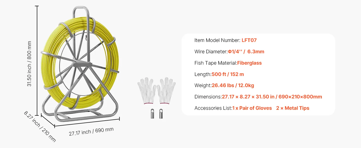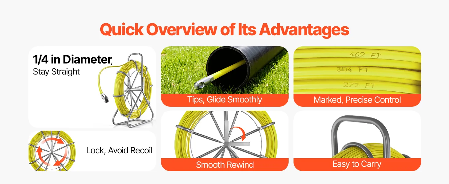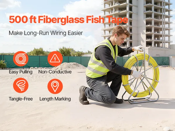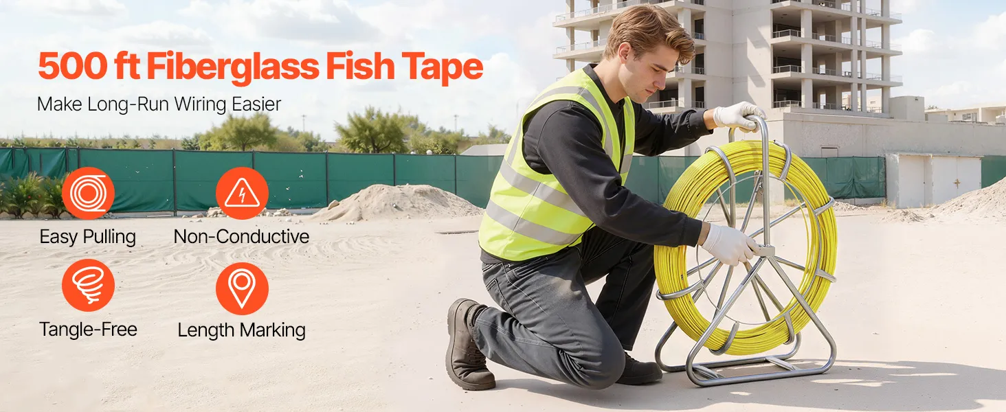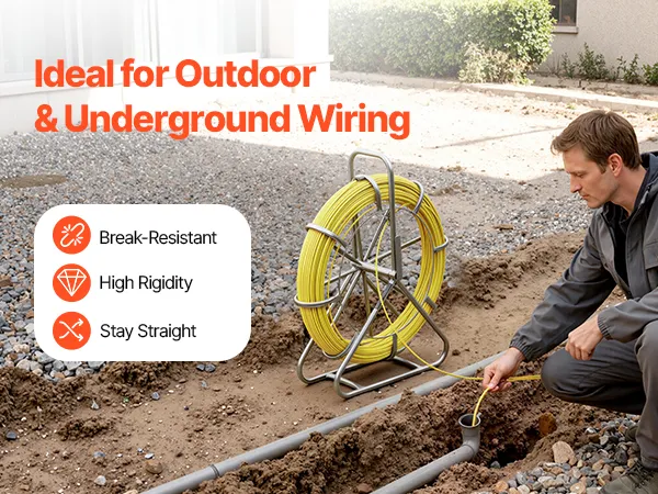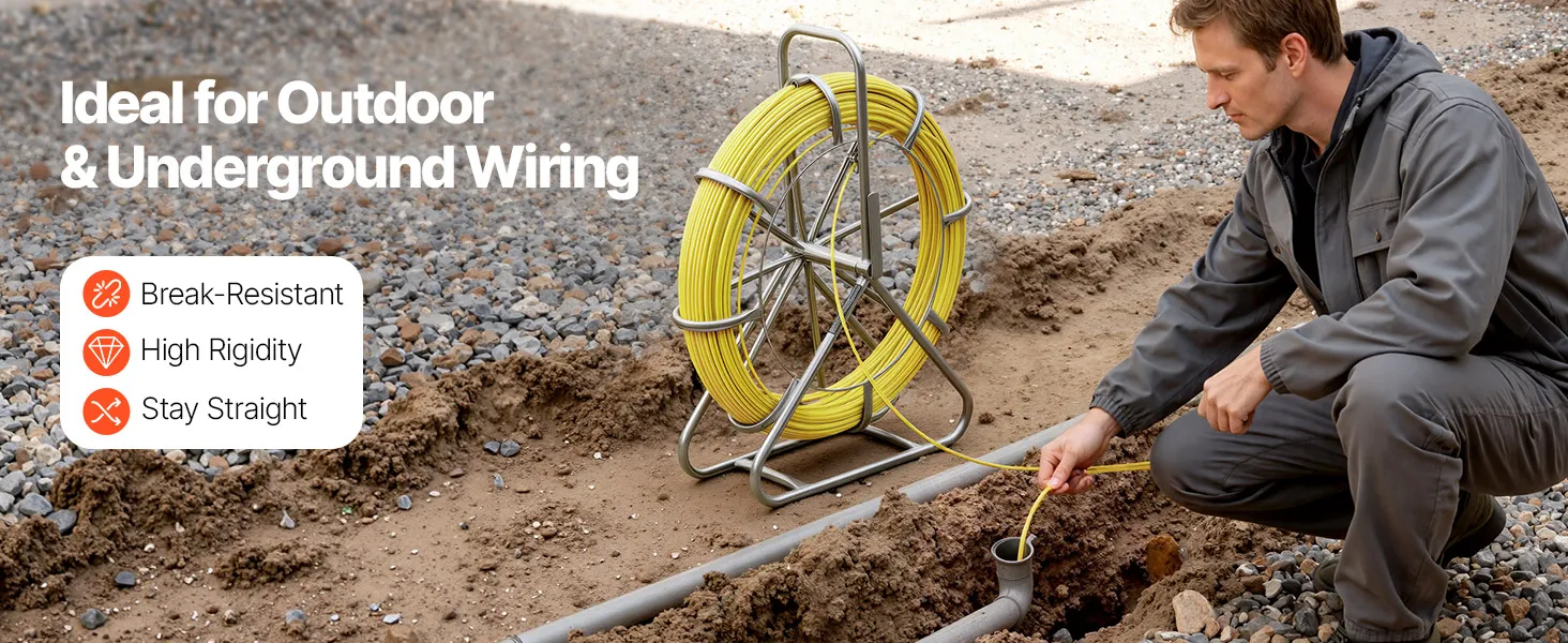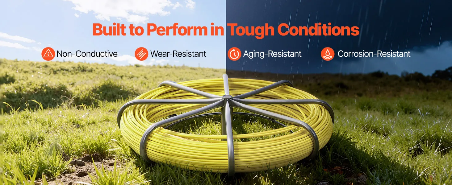 Fiberglass Construction: Made from fiberglass and PP, this fish tape is non-conductive, rust-resistant, and aging-resistant. Built to perform reliably in harsh environments without compromising security or durability