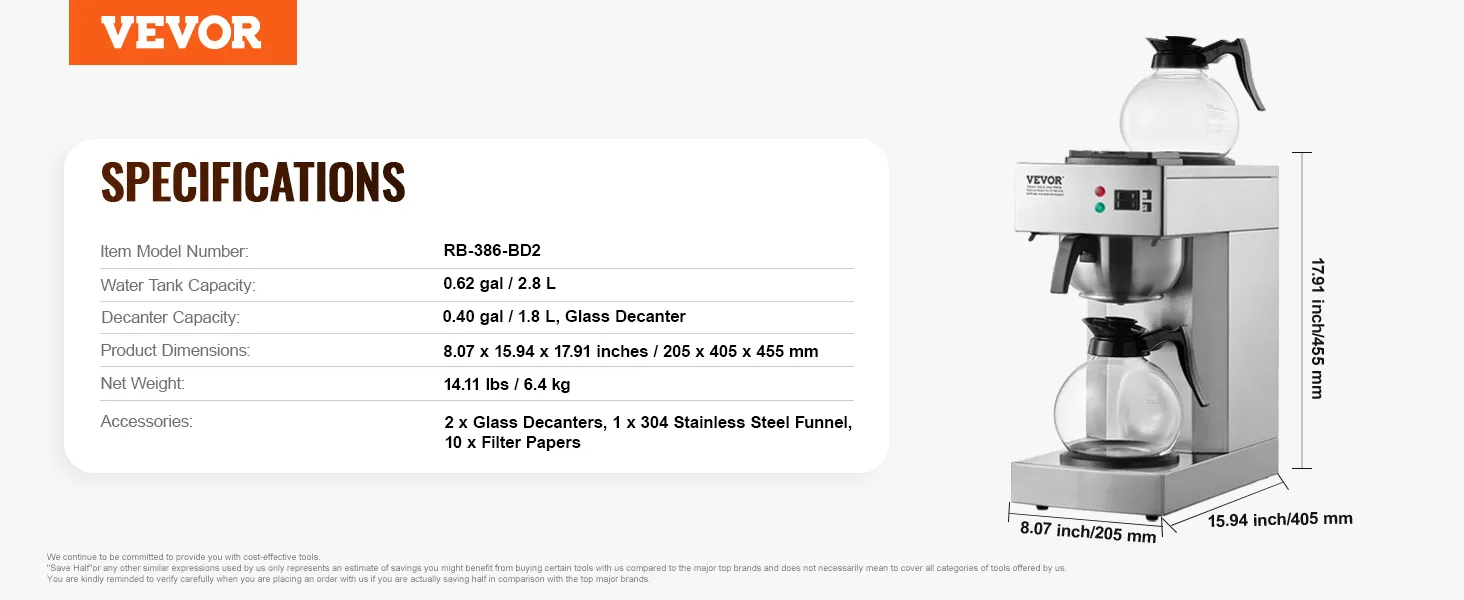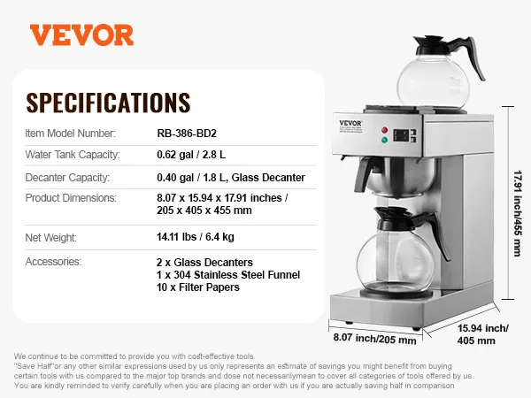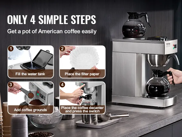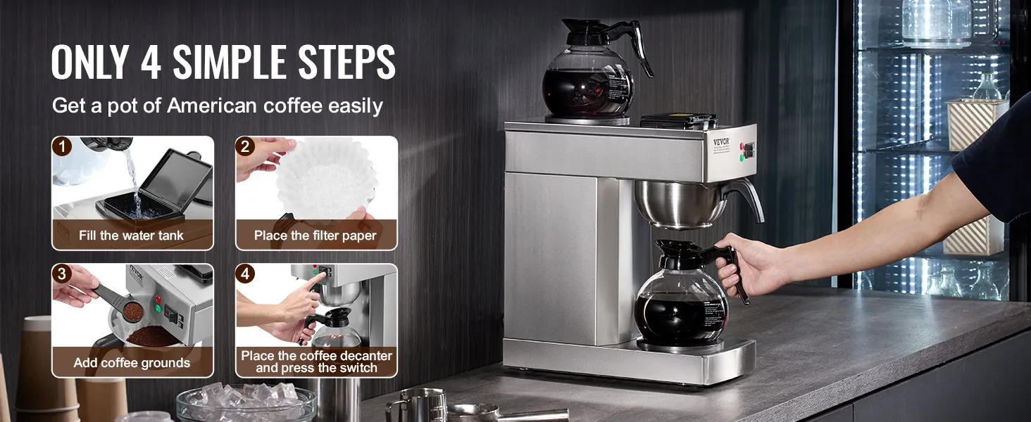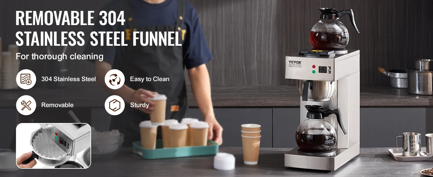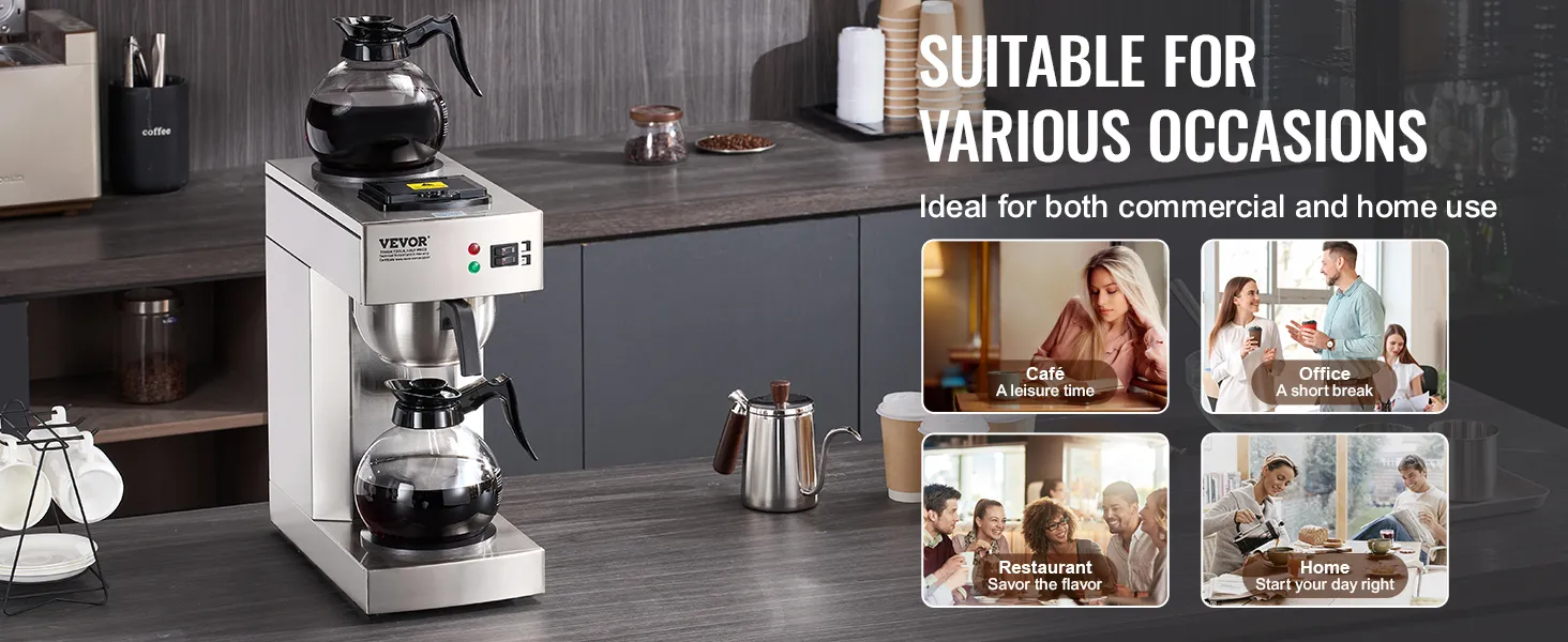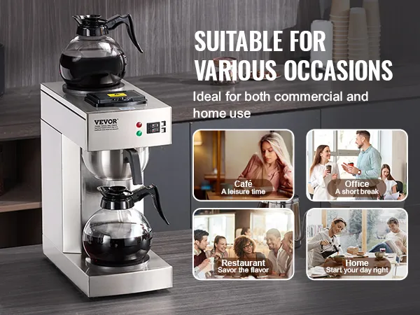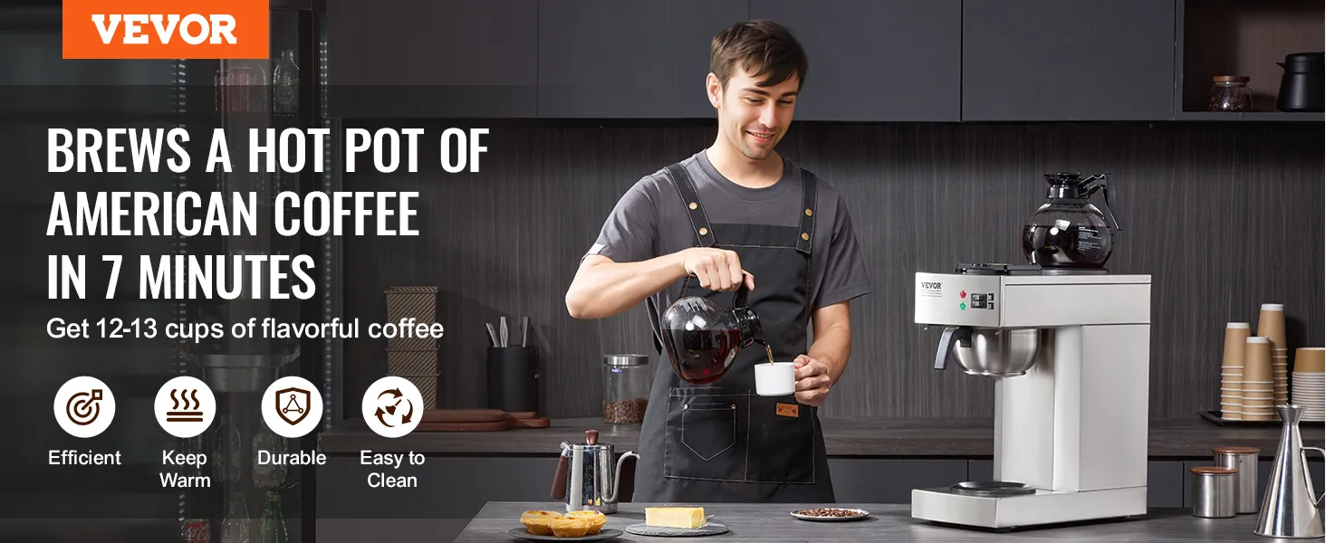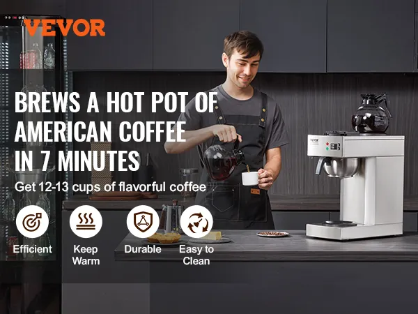 Efficient Coffee Brewing: The VEVOR commercial drip coffee maker brews a whole pot of coffee in just 7 minutes, producing 12-13 cups of delicious coffee without the wait.