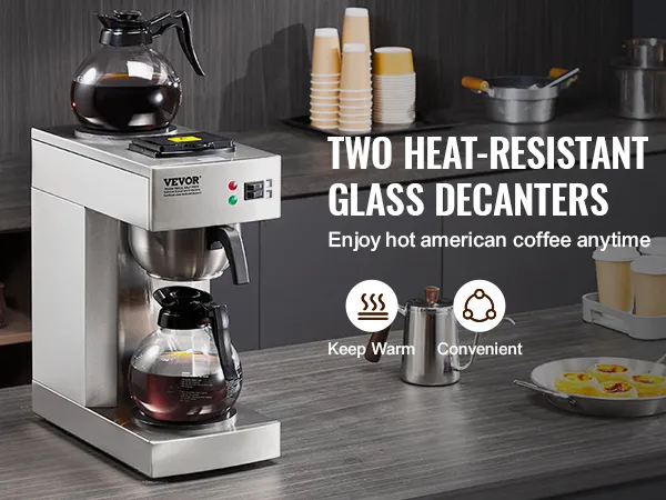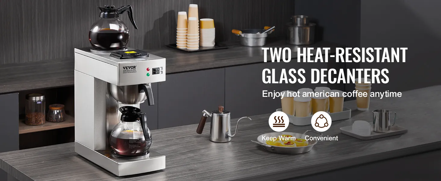Equipped with dual warming plates, this American coffee maker keeps 2 glass carafes warm during operation, ensuring you have hot American coffee available anytime.