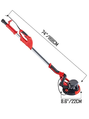 This 750W power sander features a telescoping frame, extendable from 1.4m to 1.8m, fit for different working space, grinding the ceiling is easy. All joints with the lock button can be fastened strongly to ensure safety.