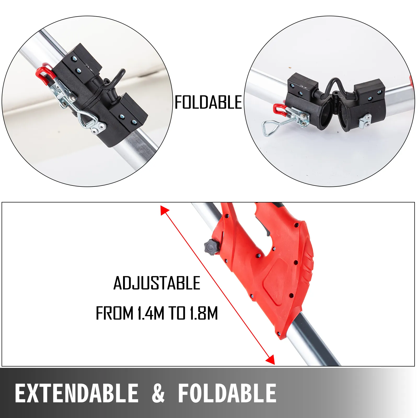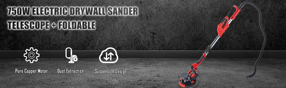 This 750W power sander features a telescoping frame, extendable from 1.4m to 1.8m, fit for different working space, grinding the ceiling is easy. And the tool is foldable, convenient for transportation and storage.