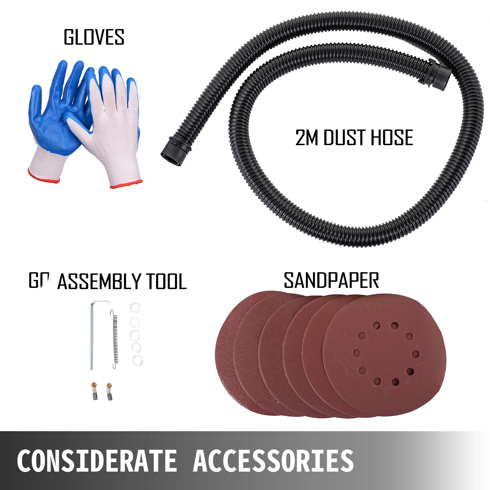- 1 X Kit of accessories(gloves, dust hose, sandpapers, carbon brushes, assembly tool)