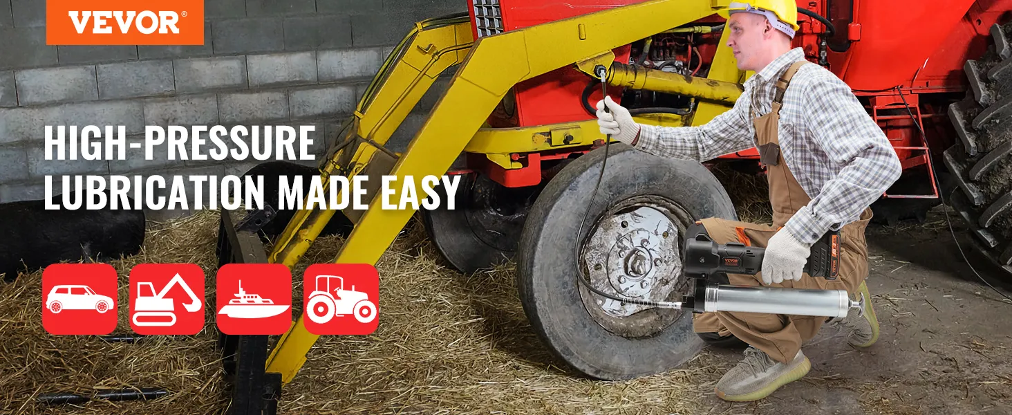 Ready for Anything: This cordless grease gun kit isn't picky. It's not just for machinery – it's perfect for cars, boats, farm equipment, and construction machinery. From factories to fields, docks to workshops, it's ready for action wherever you need it.