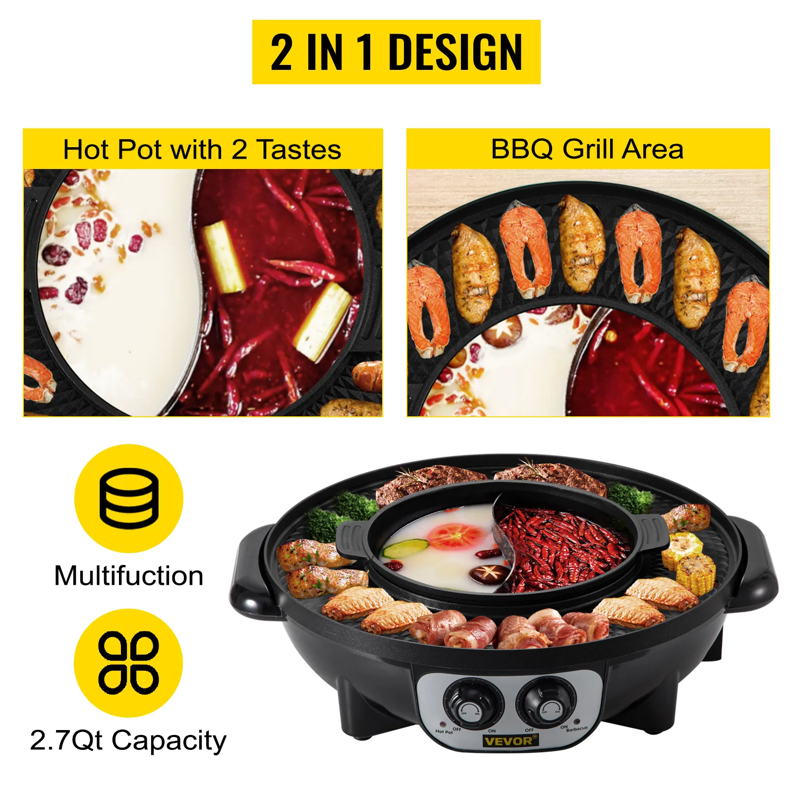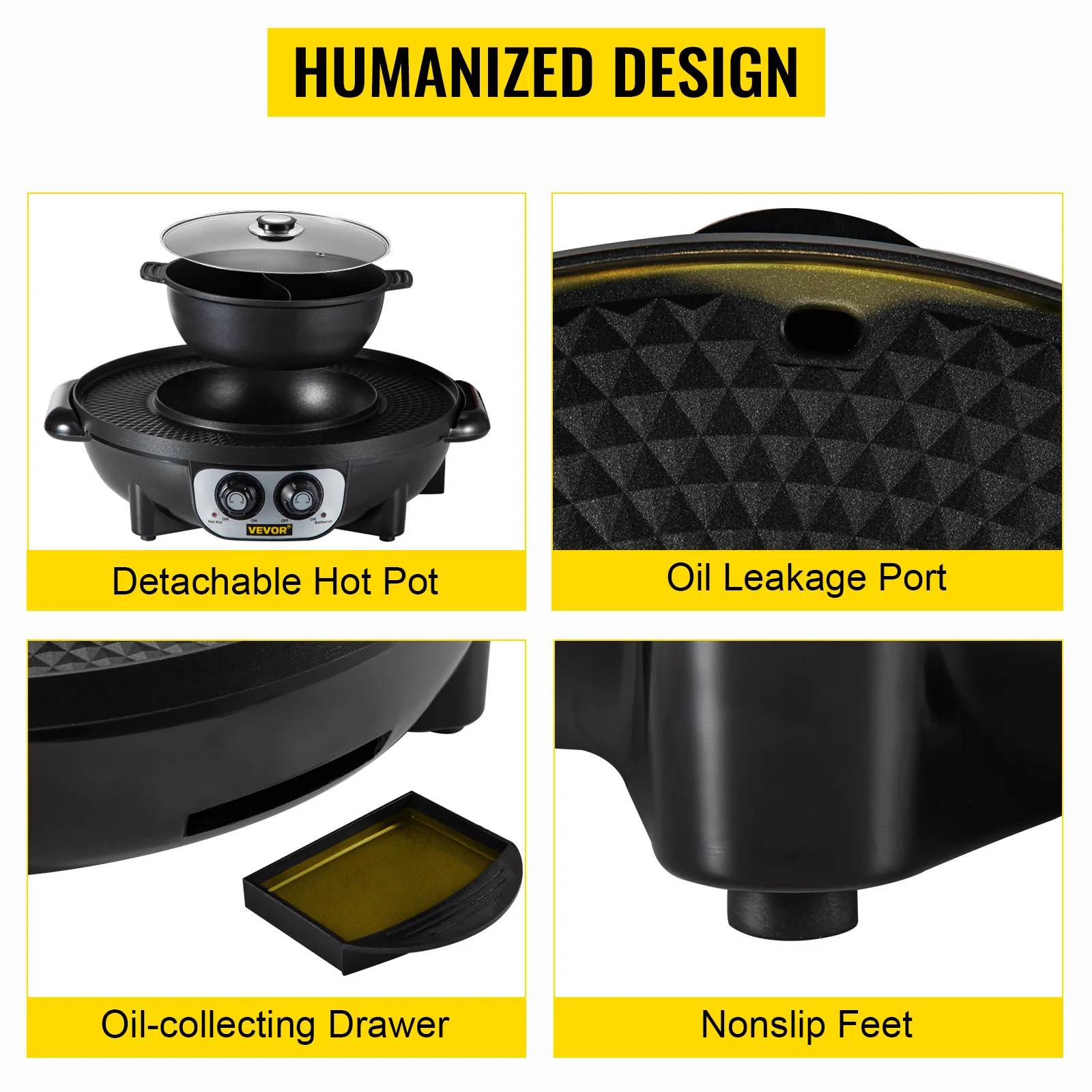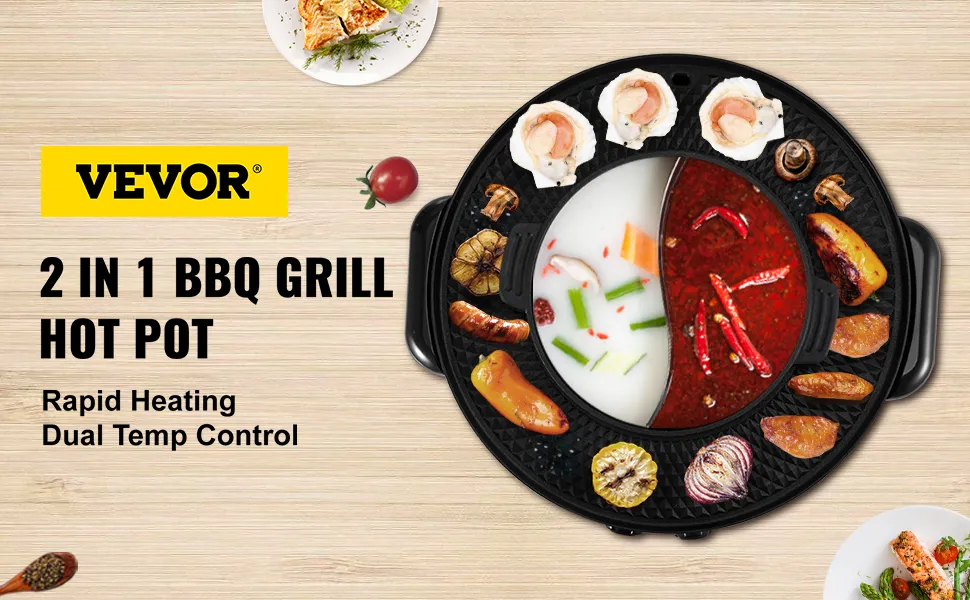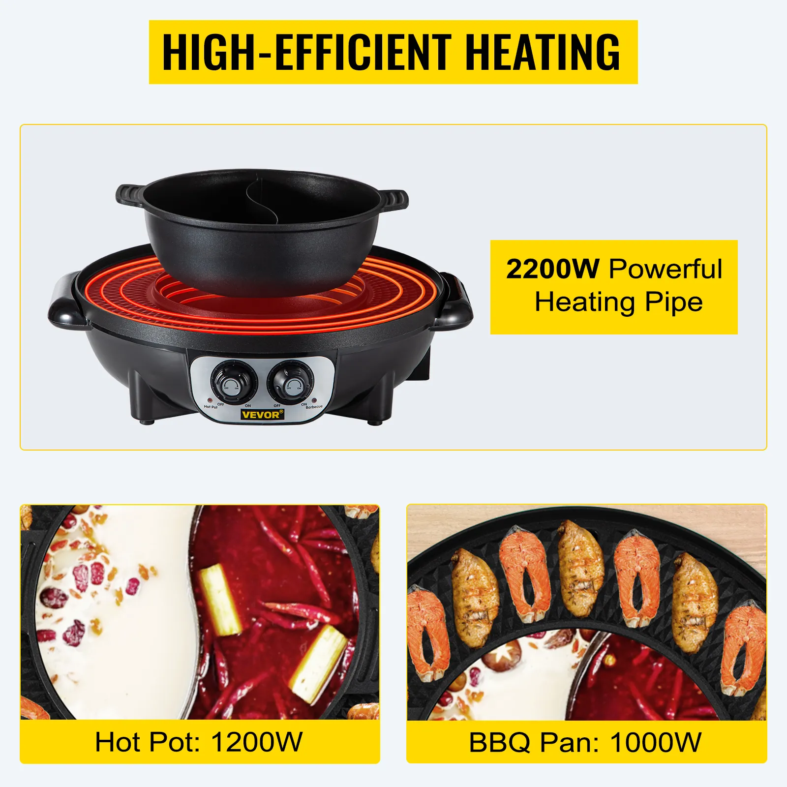 - Power: 1200W (Hot Pot) + 1000W (BBQ Grill)