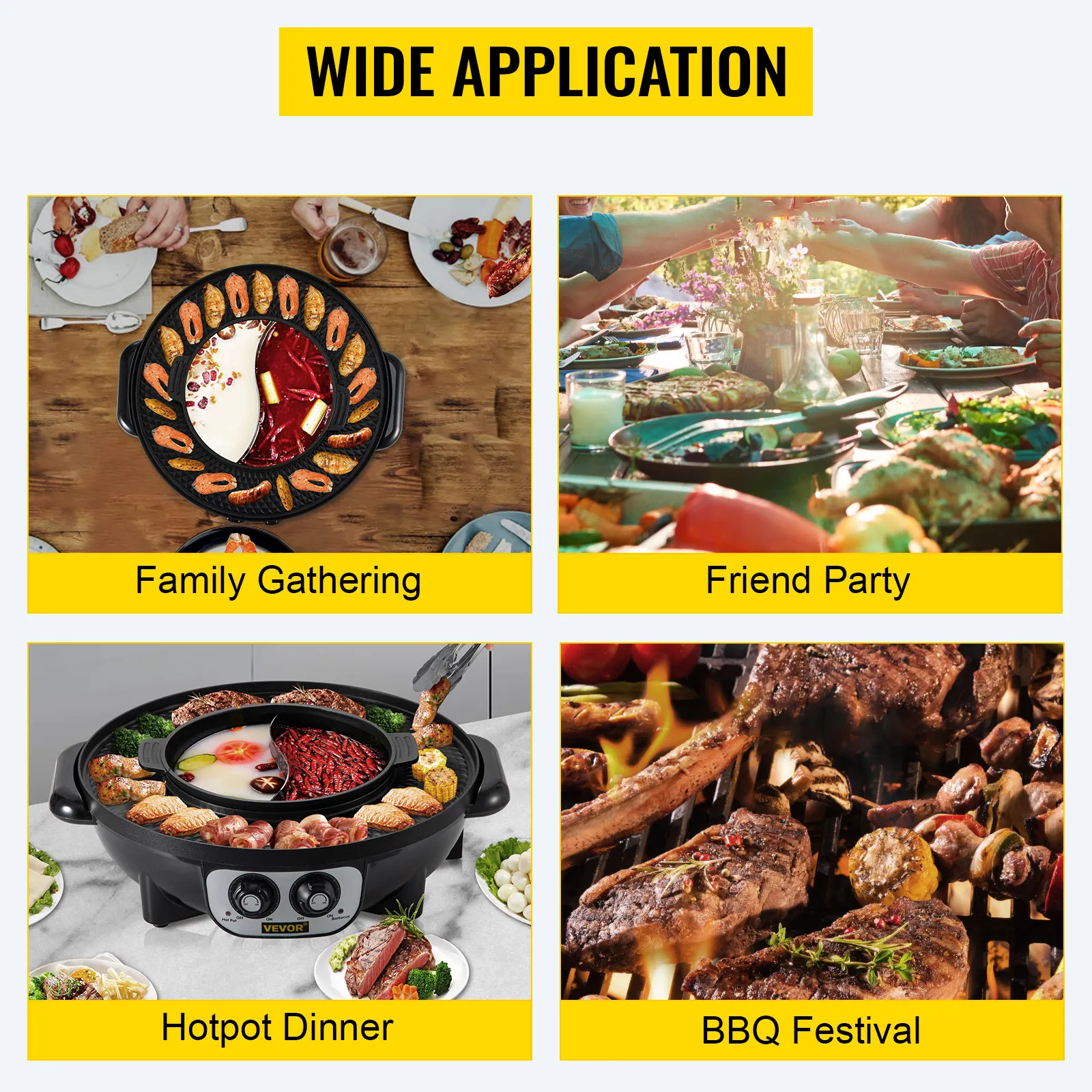 This 2 in 1 grill hot pot is suitable for 1-8 people on all foodie occasions, such as family gatherings, friend parties, and BBQ festivals. You can use it for cooking steaks, vegetables, shellfish, pasta, etc.