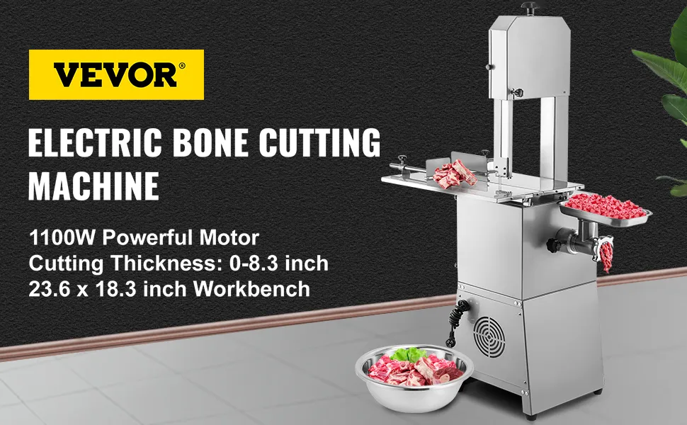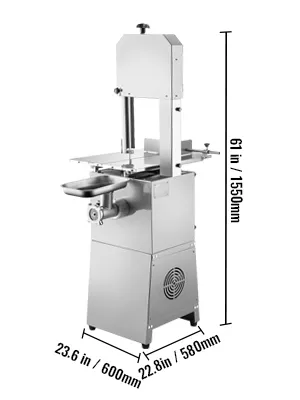 We offer you a high-quality electric bone saw machine. This machine is a convenient way to cut bones and grind meat. It is built with steel material for aesthetic appearance and durability. With a powerful motor, the machine can operate quickly and efficiently and ensure 551 lbs per hour output. Suitable for various situations, including domestic kitchens, hotel restaurants, and company use.