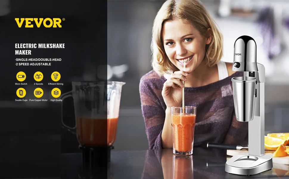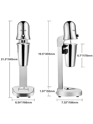 Constructed with heavy-duty stainless steel, our milkshake machine includes a food-grade stirring shaft to help you get the job done effectively and quickly. This drink mixer comes with two large-volume 800 ml cups, so you can start mixing drinks right away. All the outstanding features make it suitable for making milkshakes, fruit smoothies, milk tea, milk foam mixing, etc., which is widely applied in coffee shops, bars, tea shops, restaurants, and so on.