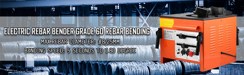 - The rebar bender and cutter machine can bend 1/4''(#2) to 1"(#8) (6 to 25 mm) rebar to 0-180°in 6-7 seconds. Two standard foot pedal control switches for hands-free bending. This rod bending machine is multi-purpose for construction or all kinds of other things related to rebar, steel bar, steel rod, screw thread steel, carbon steel, round steel bending. It is ideal for manufacturers who need simple, easy-to-use, consistent, and accurate steel bending machines. A must-have for the professional concrete installer!