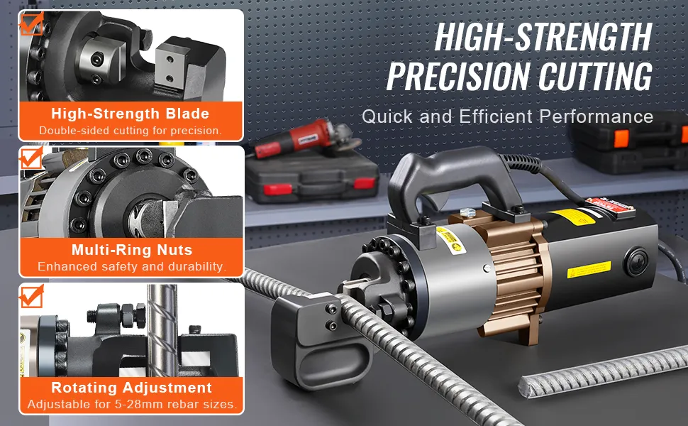 Wide Cutting Range: Adaptable to 0.2-0.98 inch / 5-25 mm cutting range, easy to cope with different cutting needs, suitable for cutting the type of rebar: medium carbon steel bar, low carbon steel bar, round steel bar, rebar and so on.