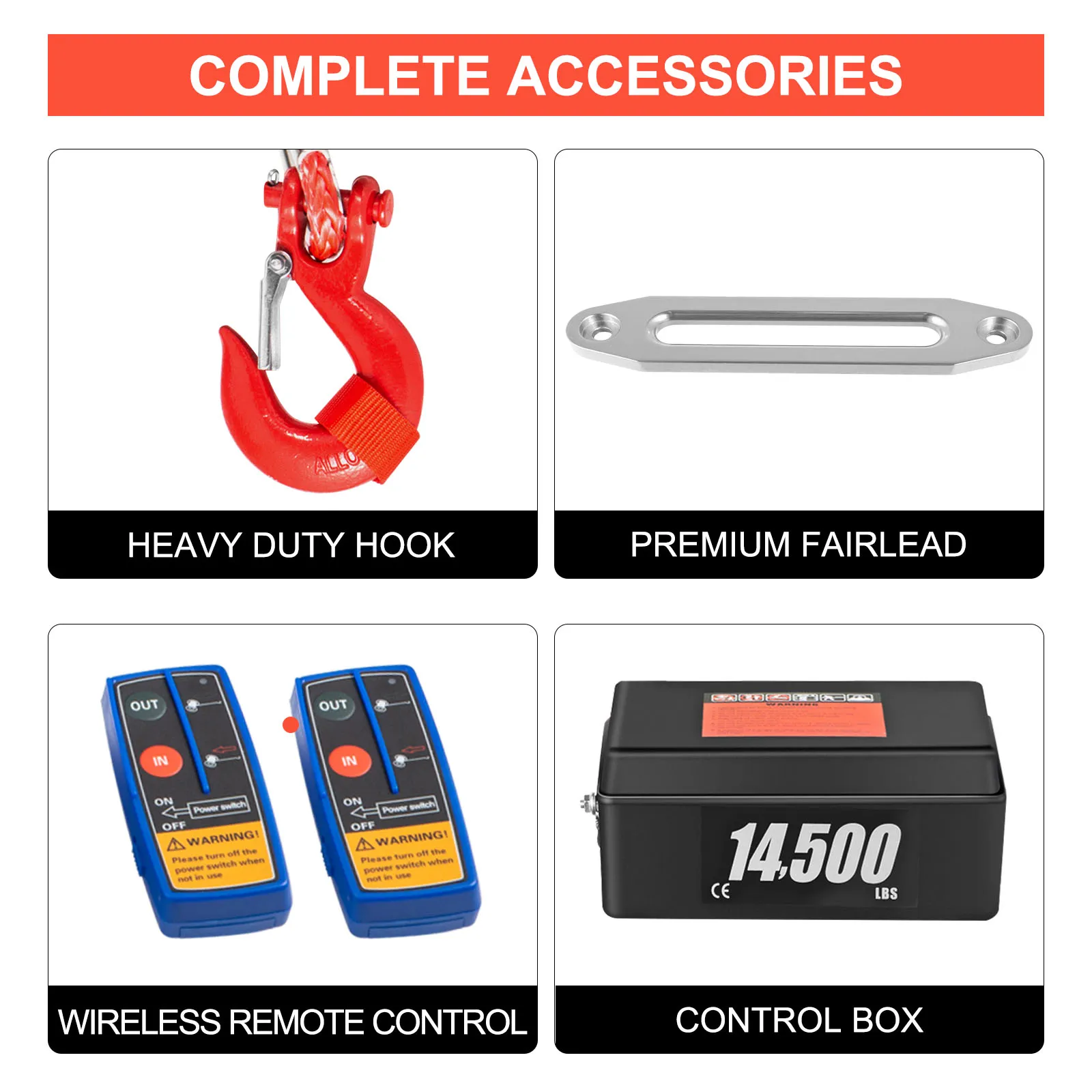 - 1 x 14500 lbs Electric Winch Kit