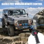 off-road vehicle using VEVOR electric winch with wireless remote in tough, waterproof conditions.