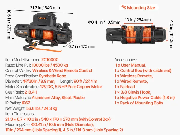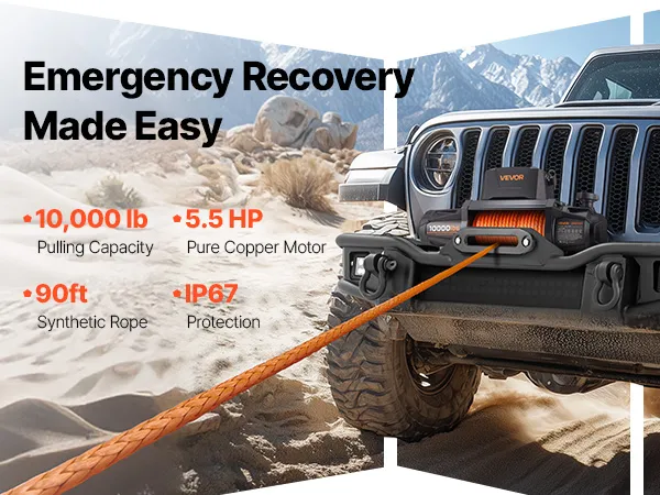 10000 lbs Strong Pull: This electric winch delivers 10,000 lbs pulling force, making SUV or pickup recovery from mud or sand quick and stress-free without gear distortion worries