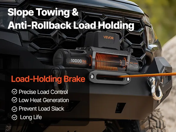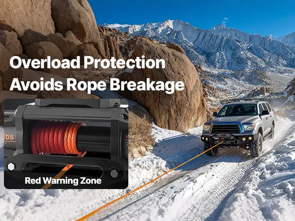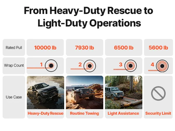 Secure & Reliable: The brake system of our towing winch locks firmly to stop rollback. A 4-layer rope guide and red warning zone give clear tension alerts, helping you avoid overload when hauling heavy loads