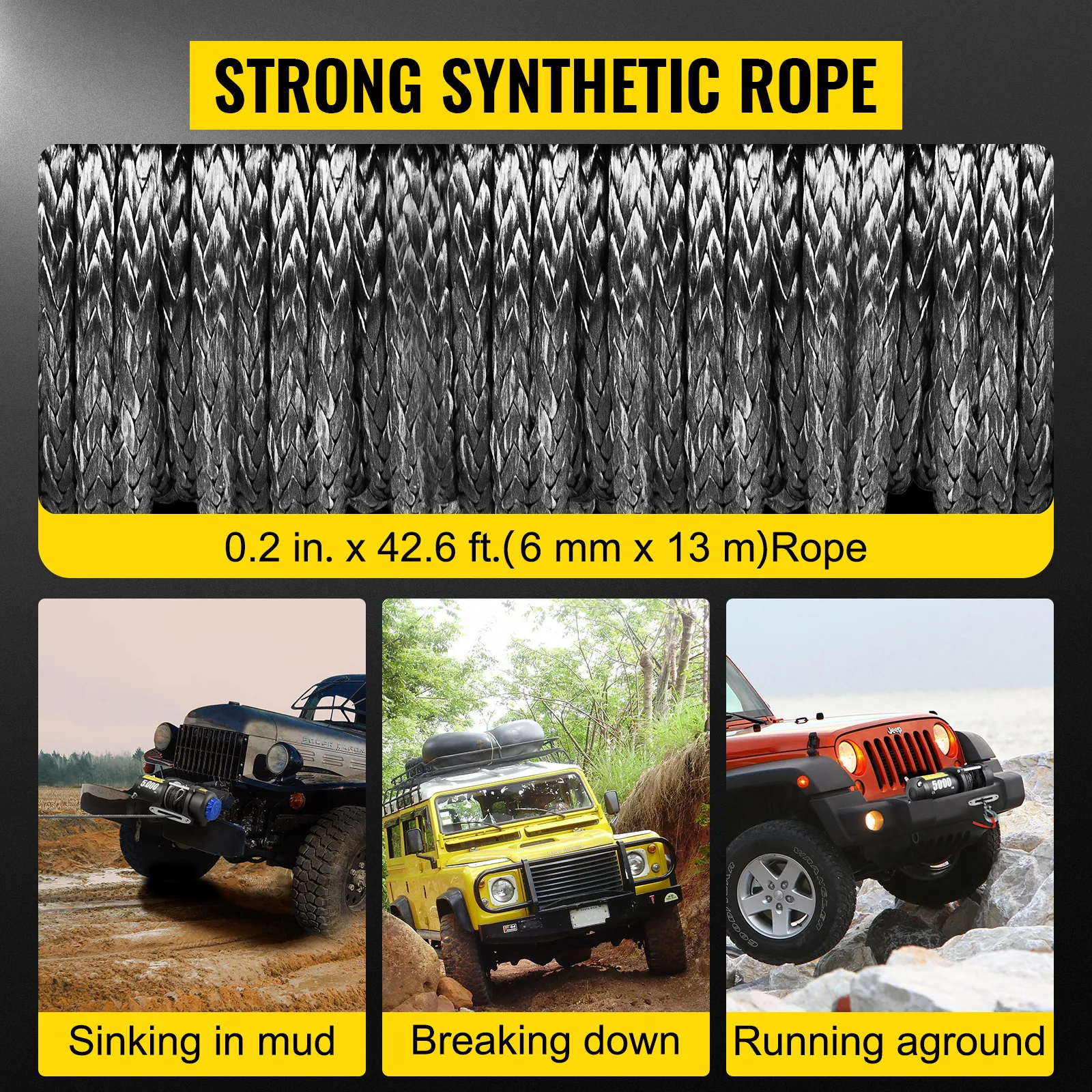The winch is equipped with a high density synthetic rope, with great resistance to bending under tension, abrasion, and tough weather. Suitable for all kinds of harsh environments.