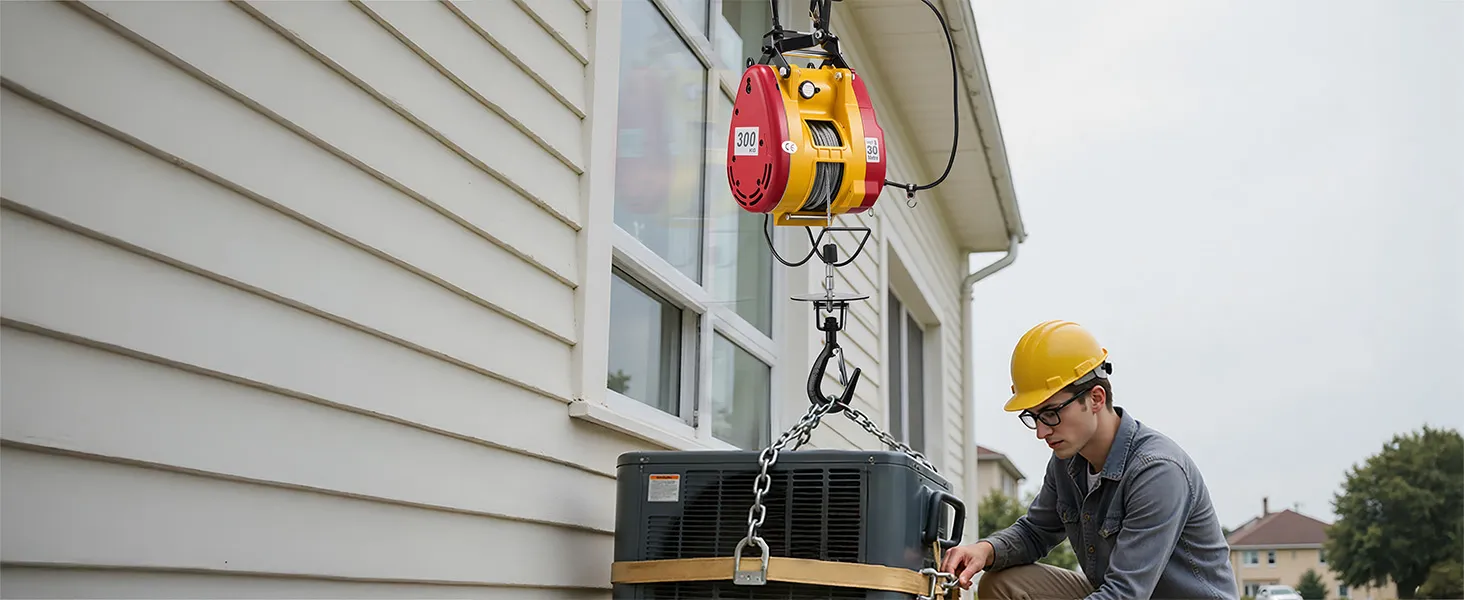 Durable, Reliable Motor: This electric winch crane uses a 1500 W motor with forced-fan cooling and enlarged carbon brushes. The design helps deliver steady output and longer working time for everyday tasks