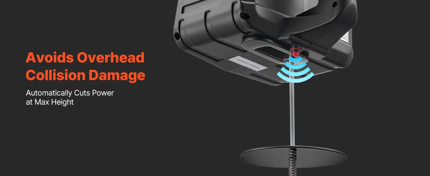Multi-Layer Security Protection: This electric hoist winch combines electronic and mechanical brakes for confident stopping. A limit switch and 360° latch hook add security, and the motor auto-stops at power loss or top limit to help avoid drops