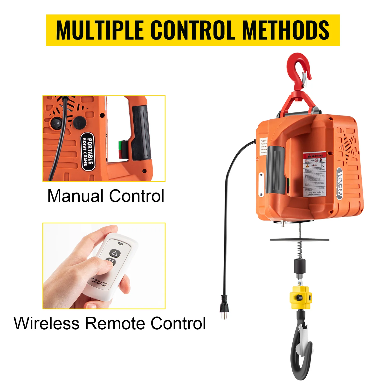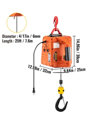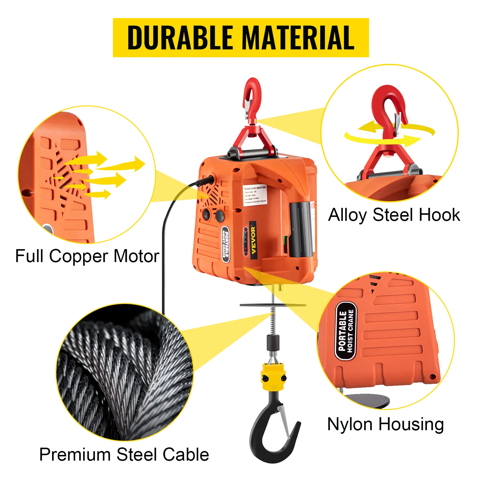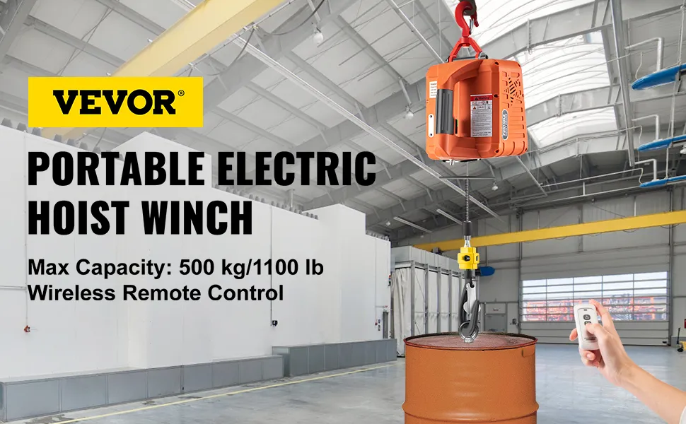 The portable electric hoist winch is designed for lifting and towing heavy-duty applications. Steel construction and a full copper motor make it durable and high-efficient. It is an ideal material handling tool for factories, docks, warehouses, construction sites, and other places.