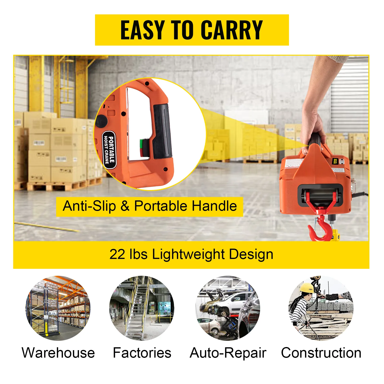 The electric hoist features a non-slip handle and lightweight, designed for your portability and comfort when in use.