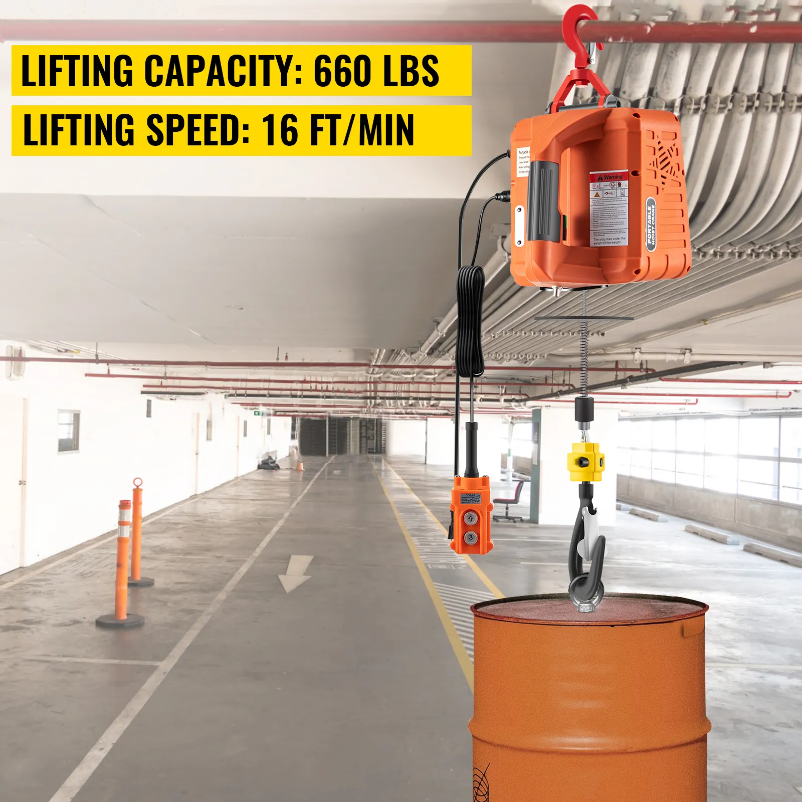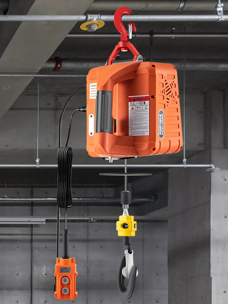 The portable electric hoist winch is designed for lifting and towing heavy-duty applications. Steel construction and a full copper motor make it durable and high-efficient. It is an ideal material handling tool for factories, docks, warehouses, construction sites, and other places.