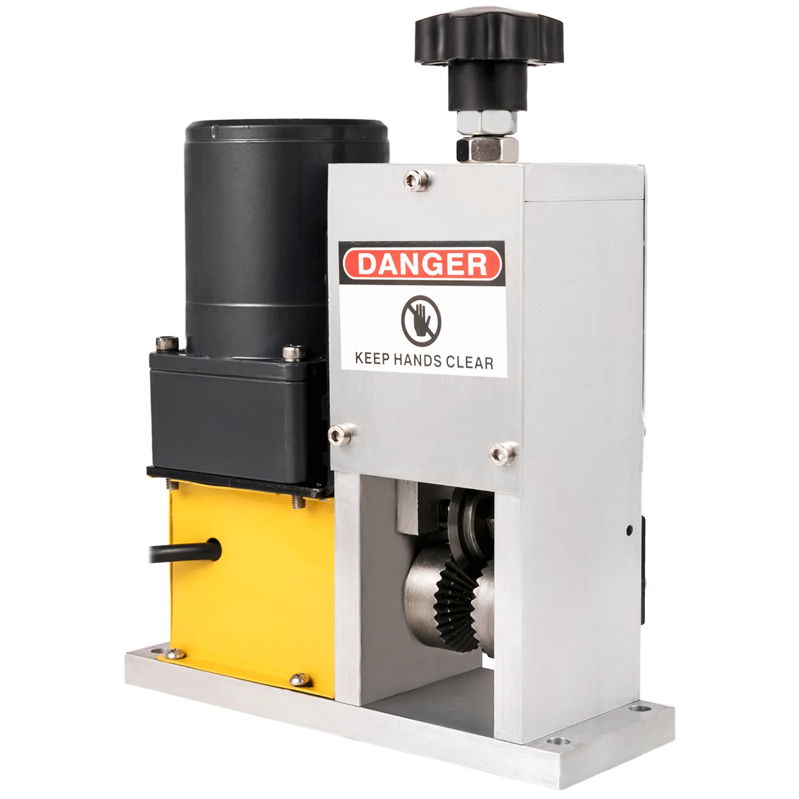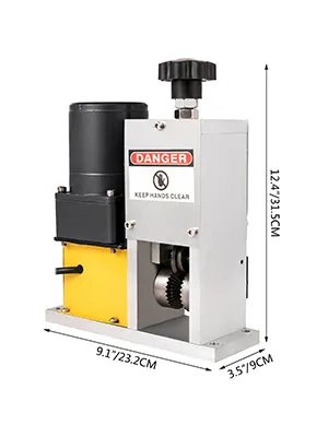 The copper wire stripping machine is equipped with a flexible gear motor that allows speed adjustment during operation to handle various wires.