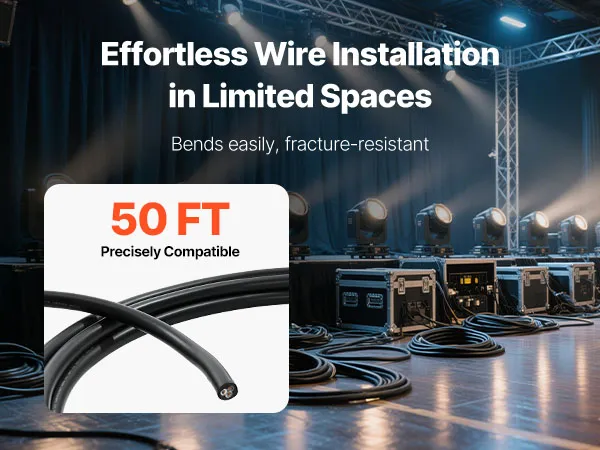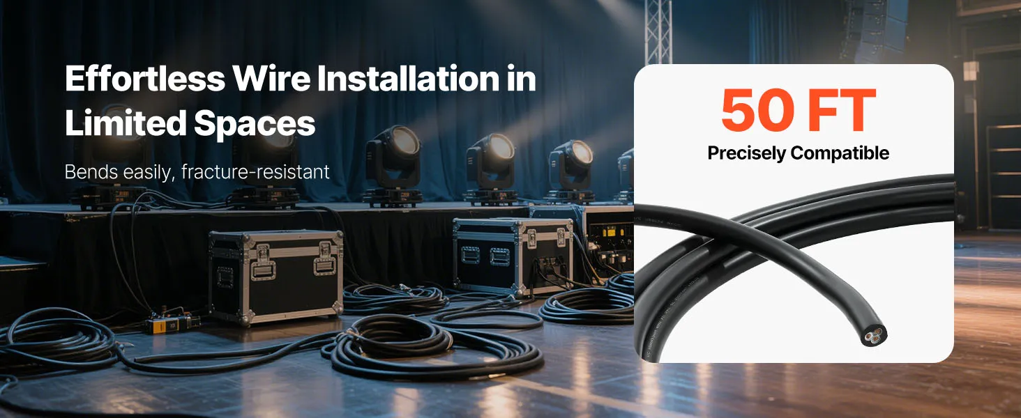 The electrical power cable is flexible and bend-resistant, making navigating tight spaces such as stage setups, vehicle generator compartments, and equipment bays easy. It can be bent freely without fear of breakage, improving wiring efficiency in enclosed environments.