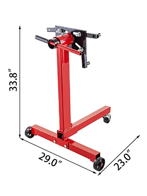 Made of heavy-duty steel material and coated with the red and black finish on the surface, the engine stand ensures long service time.