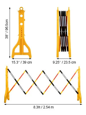 The plastic traffic barricade is flexible to expand from 9.25 inches to 8.3 feet, blocking off a large area. The barricade barrier can spread quickly and smoothly with rugged locknuts.