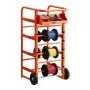 This wire spool rack is built with durable materials and a rust-resistant powder coating, supporting up to 300 lbs. It features 4 central and 5-6 side axle tubes to hold multiple cable spools of various sizes. With two solid rubber wheels, it’s easy to move, ideal for indoor and outdoor use.