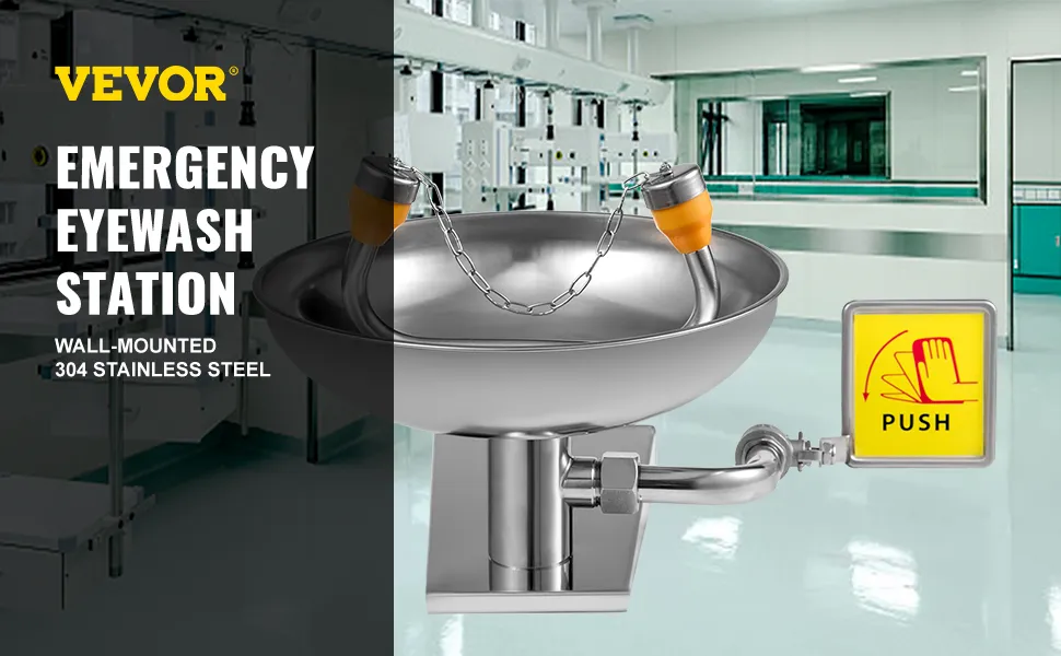 This wall-mounted eyewash station is used to minimize the damage when a toxic or hazardous substance is splashed on the eyes, to give an emergency washing. It is widely used in power stations, pharmaceutical, medical, chemical, petroleum, shipbuilding, electronics, smelting, printing and dyeing, and other industries or fields. It is made of durable 304 stainless steel material, with no harmful substances precipitated.