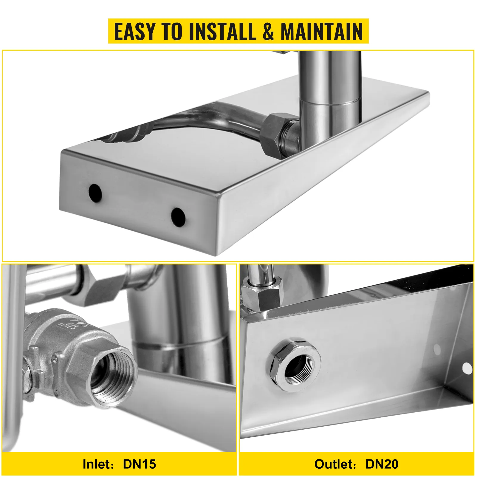 This eyewash station is made of thickened 304 stainless steel, which features good resistance to corrosion, acid, alkali, and rust, durable for long service life.