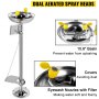The dual eyewash nozzles with built-in bubbler and filter provide a soft, comfortable foamy spray that avoids second damage to the eyes. The 10.3-inch basin avoids water splashing with a water seepage hole. Two dust covers protect the spray heads.