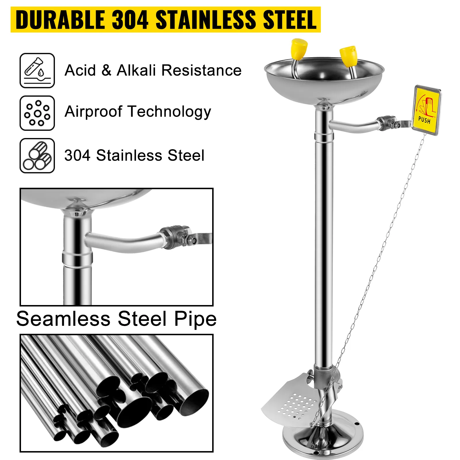 This pedestal-mounted eyewash station is used to minimize the damage when a dangerous and hazardous substance is splashed on the eyes, to give an emergency washing. It is widely used in power stations, pharmaceutical, medical, chemical, petroleum, shipbuilding, electronics, smelting, printing and dyeing, and other industries or fields. It is made of durable 304 stainless steel material, built to last.