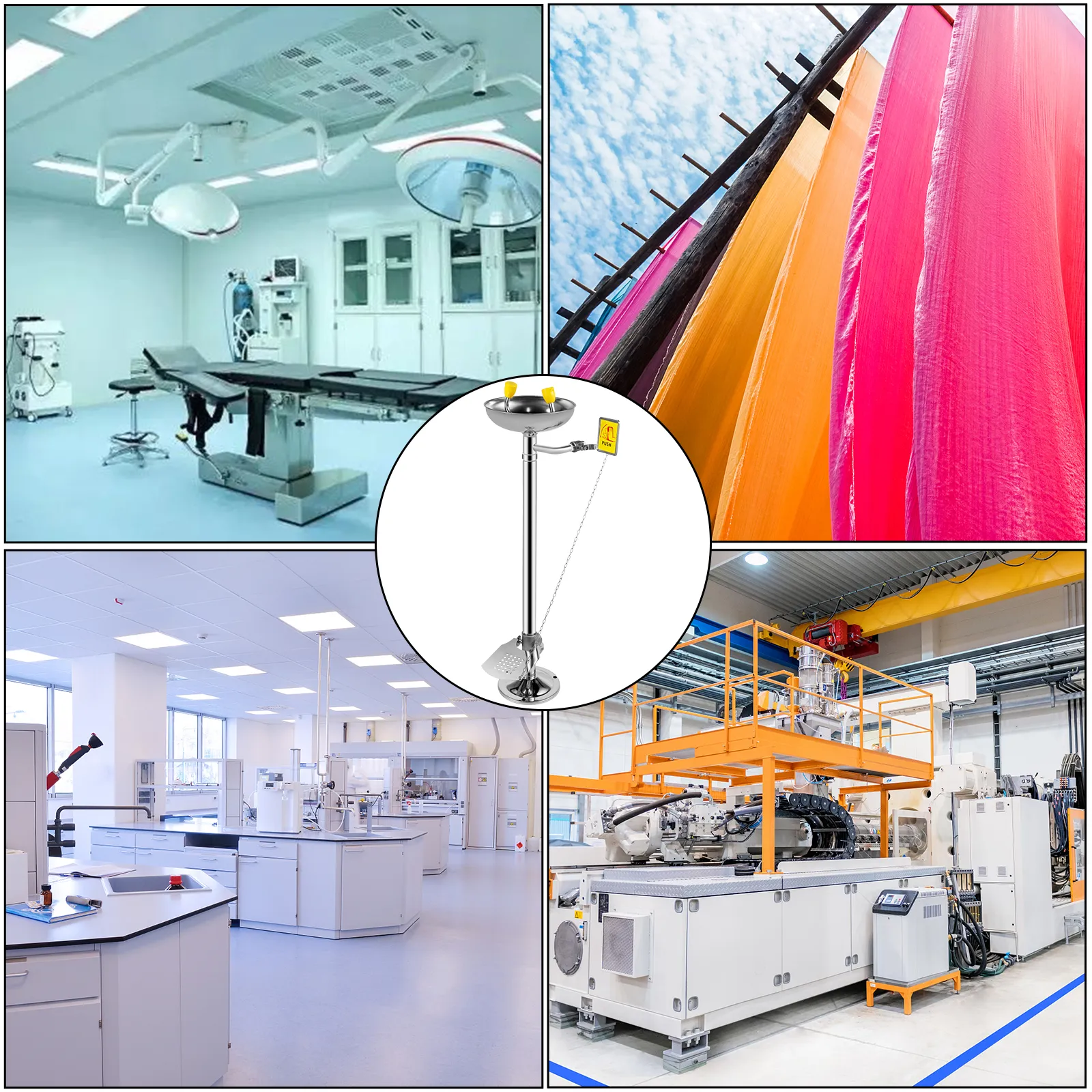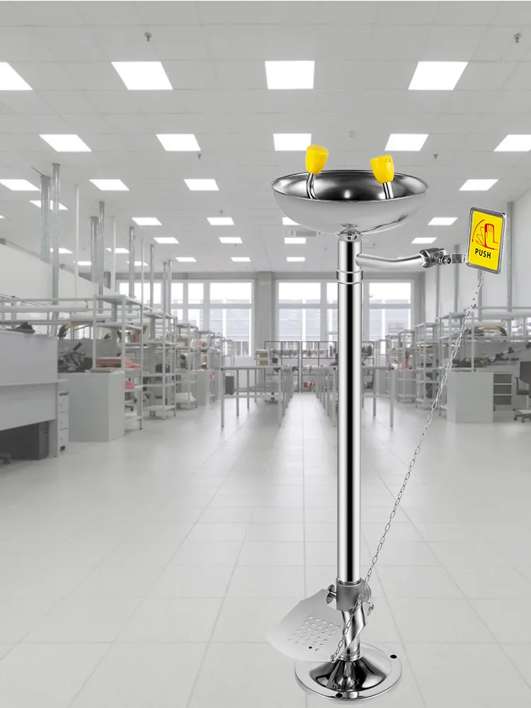 The eyewash station can be used in petroleum, chemical, manufacturing, casting, pharmaceutical, medical, and other industries to give emergency cleaning to the eyes and face to minimize injury.