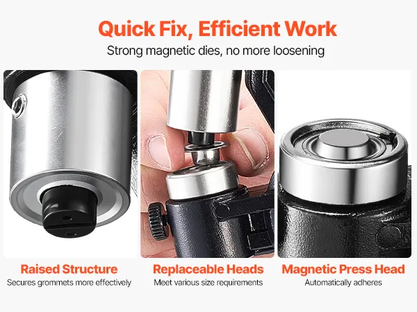 Our innovative magnetic die head instantly secures grommets as they approach, eliminating the need for manual alignment. This eyelet tool provides easy and secure operation—even first-timers can manage it effortlessly.