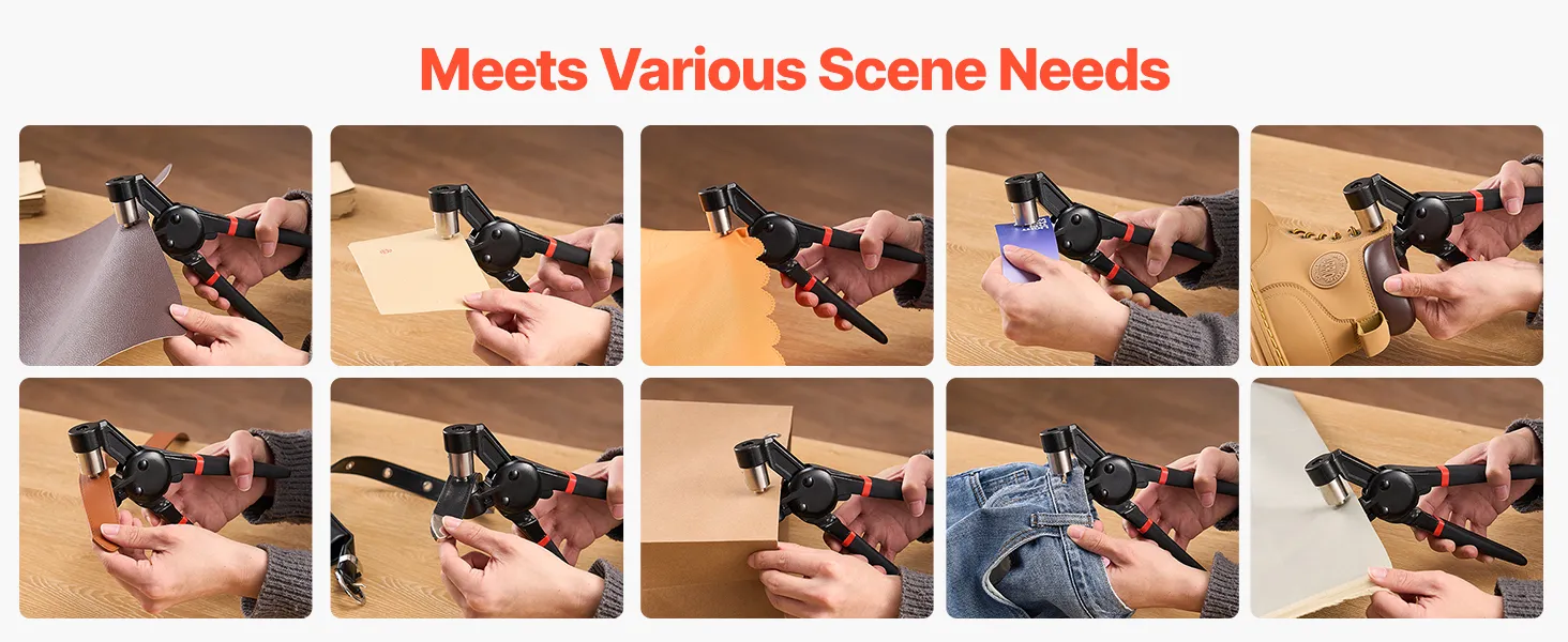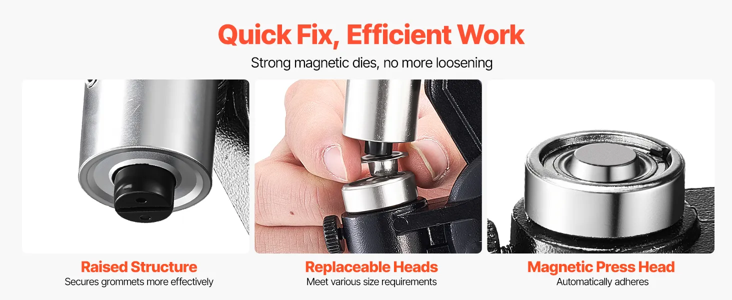 Efficient & Secure Operation: The strong magnetic die head instantly secures grommets without manual alignment, ensuring fast and secure use. Simple steps let even beginners handle the eyelet tool with ease