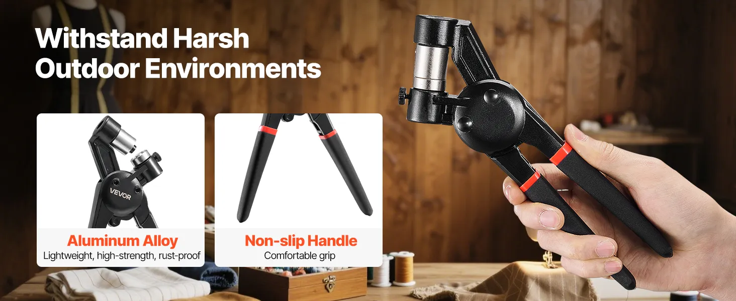 Comfortable & Portable: The grommet eyelet pliers kit is mainly crafted from lightweight yet durable aluminum alloy to minimize fatigue indoors or outdoors. The non-slip handle provides a secure grip, even in damp or high-force conditions